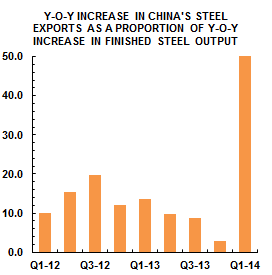 However, it is worth noting that approximately 50 percent of China’s increased, year-on-year, steel production in the first quarter of 2014 was exported. Moreover, imports of steel into China in the first quarter of this year are little changed from the figure in 2013.